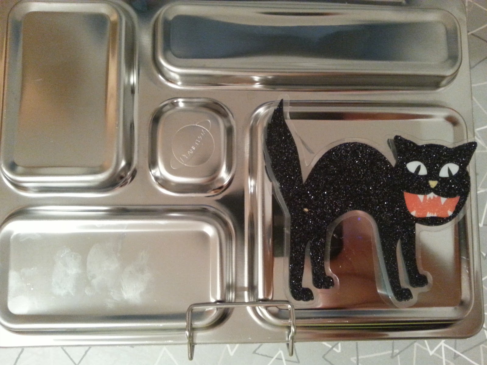 For fun, I added a die cut black cat to my Planetbox and a witch to my husband’s. And I included a cute witch napkin in each of the three lunches.