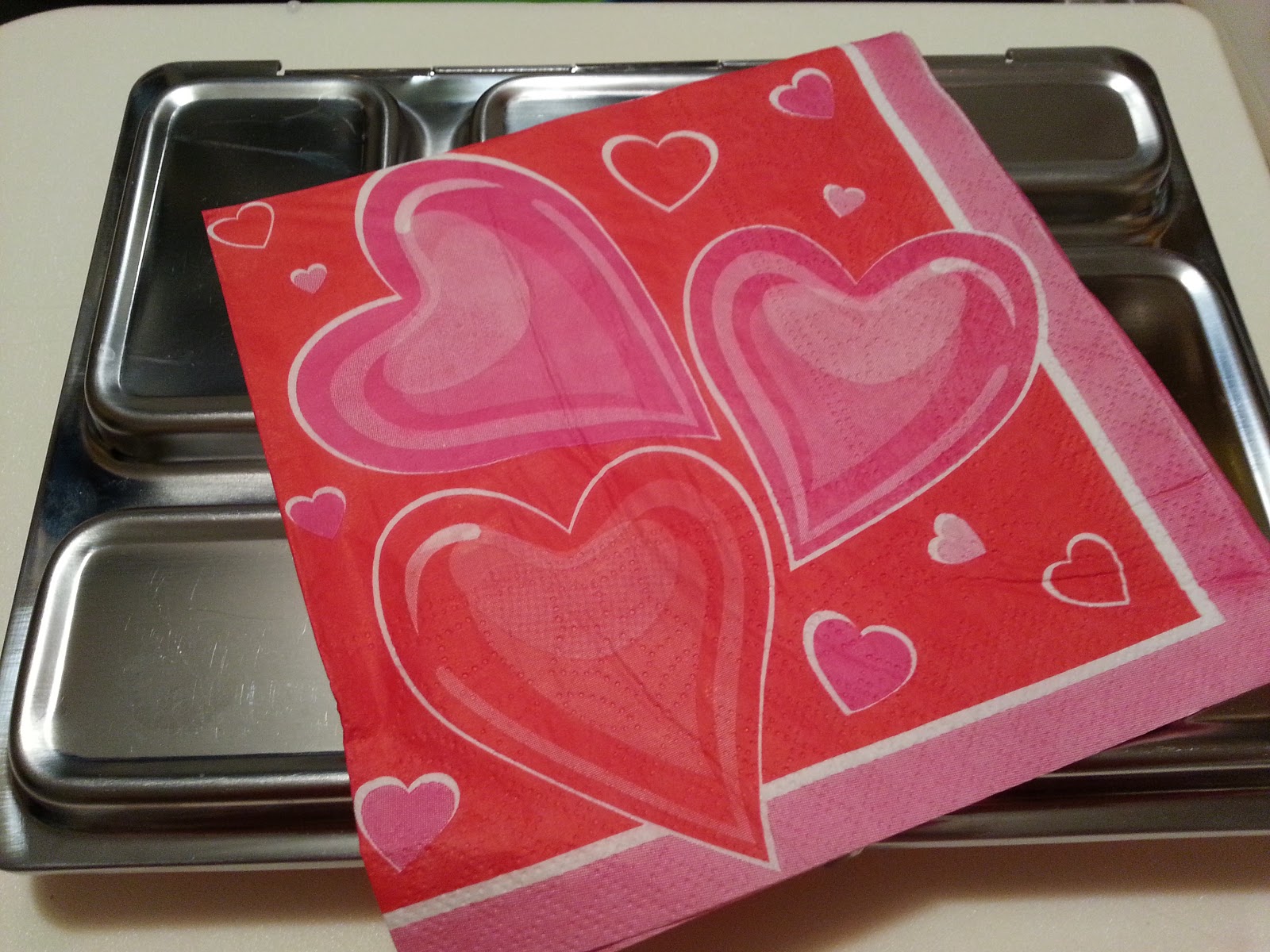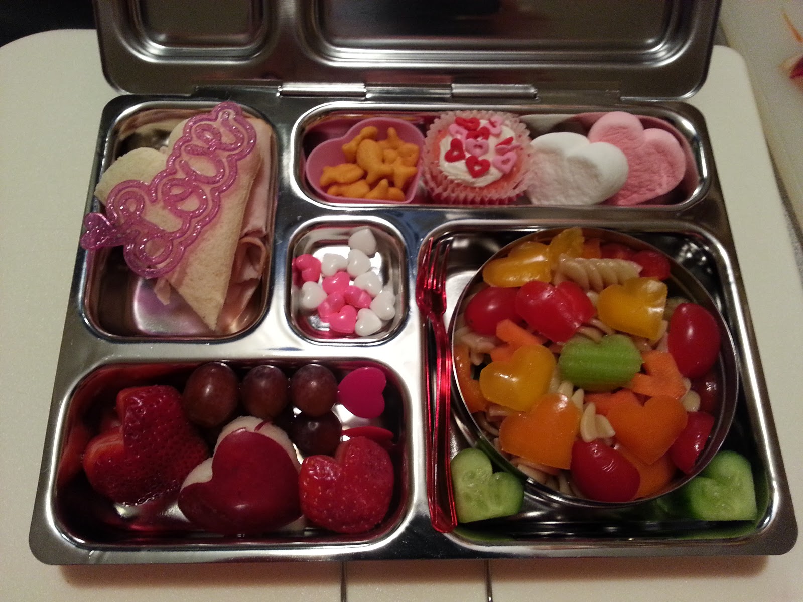 I had included the little red fork because it matched the Valentine’s theme, but I later realized it wasn’t too realistic or useful when a lot of the pasta salad came back uneaten and he explained that he couldn’t eat fast enough with that little fork.